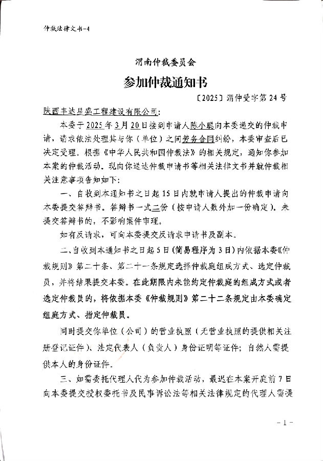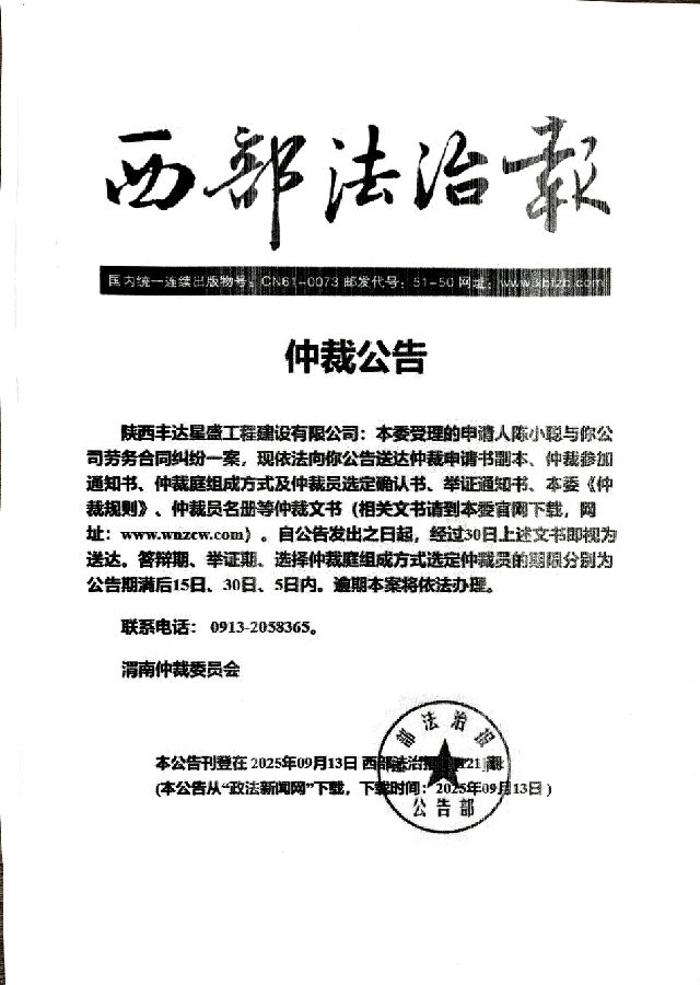 陳小聰與陜西豐達星盛工程建設(shè)有限公司勞務合同糾紛案公告